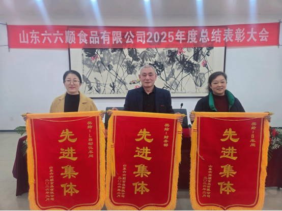 2月8日,六六顺食品召开2025年度总结表彰大会,全体后勤管理人员与车间先进员工齐聚一堂,复盘2025年的耕耘收获,吹响2026年的进军号角。
